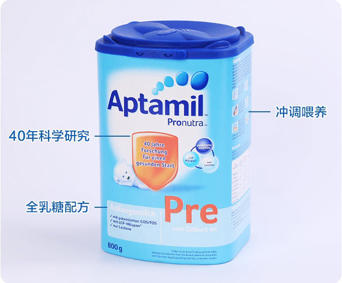 德国爱他美奶粉pre段配方最为接近母乳,适合早产儿、新生儿母乳较少的宝贝搭配使用最佳。是为宝宝从出生第一天开始精心配制,不含淀粉成分,可有效减轻刚出生宝宝的肠胃负担,适合宝宝的消化吸收,可以为刚出生宝宝母乳混合喂养。Aptamil Pre段奶粉的蛋白、脂肪、矿物质及碳水化合物-乳糖的成分近似于母乳,含有LCP(长链多价不饱和脂肪酸),可促进宝宝神经系统成长发育。