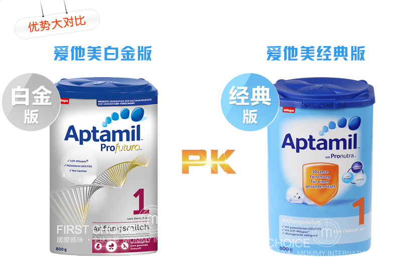 德国爱他美奶粉是欧洲市场份额第一的婴儿奶粉品牌,也是国内用户海淘必选的奶粉品牌之一,爱他美奶粉长期位居国际妈咪海淘母婴商城海淘直邮婴儿奶粉销量排行榜前三强,可见国内用户的热衷。德国爱他美奶粉目前有两个版本,白金版和普通蓝版,很多新手海淘妈妈究竟与究竟选择德国爱他美奶粉白金版还是普通蓝版呢?两个版本爱他美奶粉有什么区别?国际妈咪海淘育儿专家总结了两款奶粉的特点与区别,希望给新手海淘德国爱他美奶粉用户一些帮助。