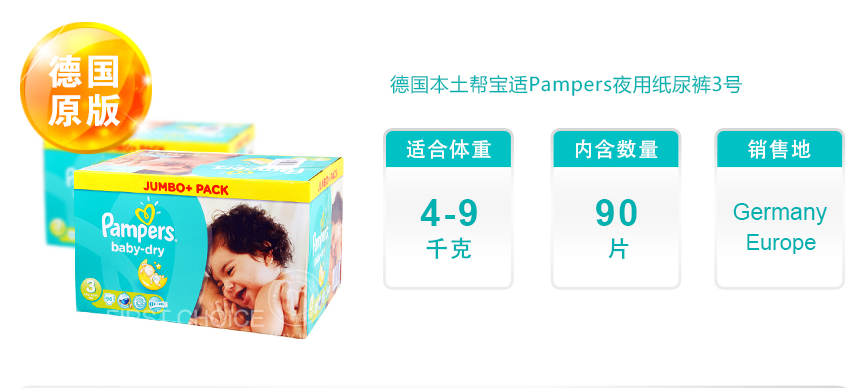 德国帮宝适Pampers纸尿裤:帮宝适是德国纸尿裤第一品牌,德国本土帮宝适纸尿裤有着纸尿裤中的“爱马仕”的称号。是纸尿裤界真正的白富美,很多人只知道日本纸尿裤好,对欧洲纸尿裤了解甚少,德国是一个谦虚严谨,懂的反思的民族,生产的很多产品质量在世界上一直领先。欧洲一直是国人最向往的旅游目的地,最近也有很多童鞋把海淘的范围拓展到了欧洲,那么首选就是德国货。对于奶粉、纸尿裤、安全座椅、厨具、滤水器甚至药物,各种营养品和有机化妆品,德淘的趋势都在逐渐爬升。德国帮宝适尿裤海淘直邮搜索下载【国际妈咪】app,进入国际妈咪官网,中文操作,香港仓储中心自营直发,正规国际物流空运直达,无需转运,最快时效仅3,提供海外发票,正品保障。还有不懂的国外母婴用品知识可以直接咨询国际妈咪海淘官网育儿客服。