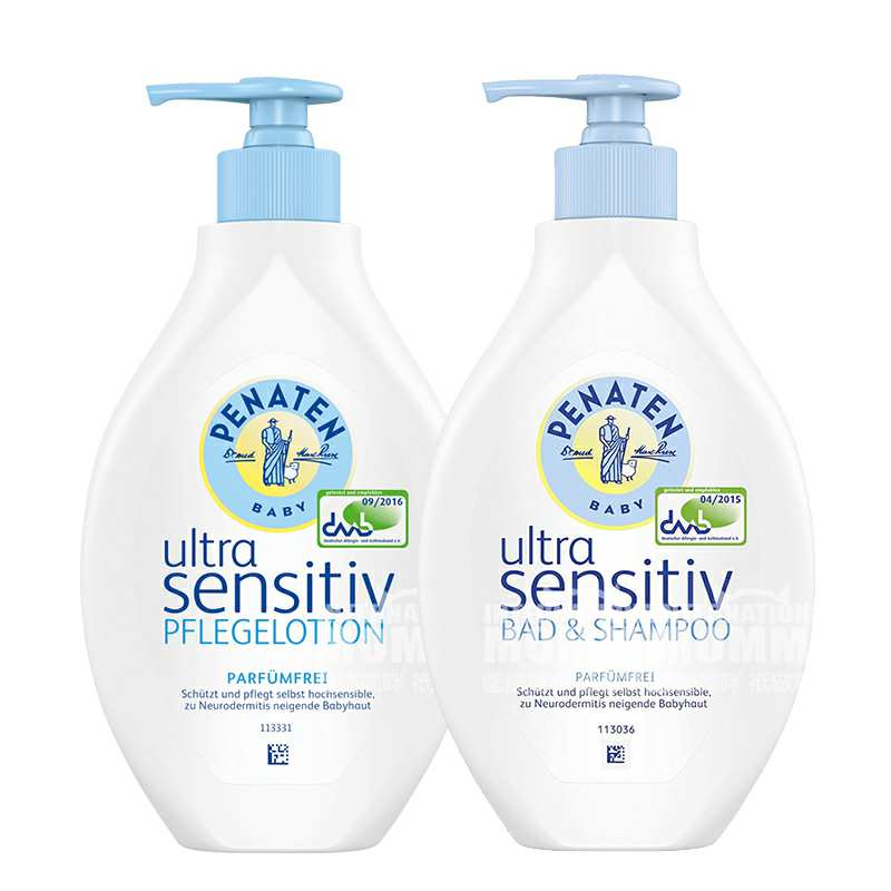 【2件装】PENATEN 德国贝娜婷婴幼儿免敏洗发沐浴二合一+身体乳无香型 海外本土原版