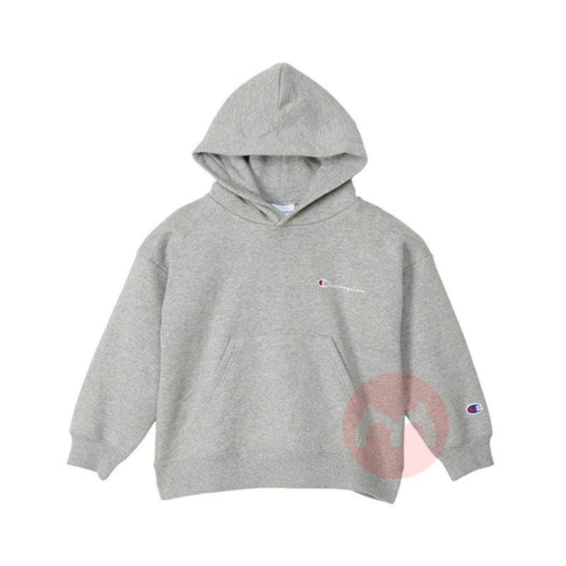 Champion 美国冠军儿童纯棉基本款字母刺绣连帽卫衣 灰色 海外本土原版