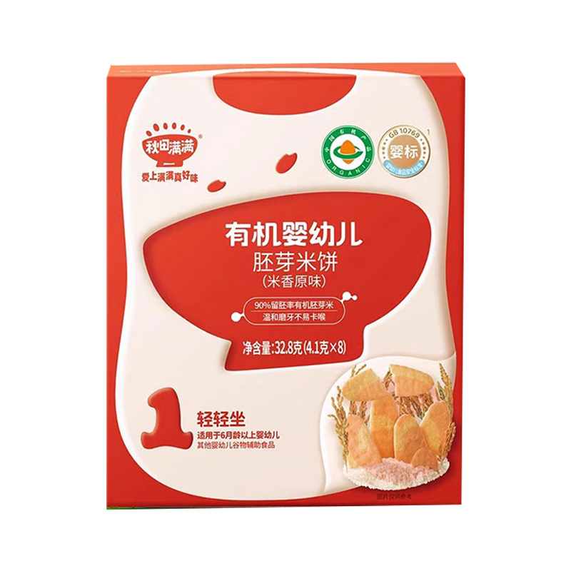【95任选6件】秋田满满有机婴幼儿胚芽米饼 米香原味 32.8g