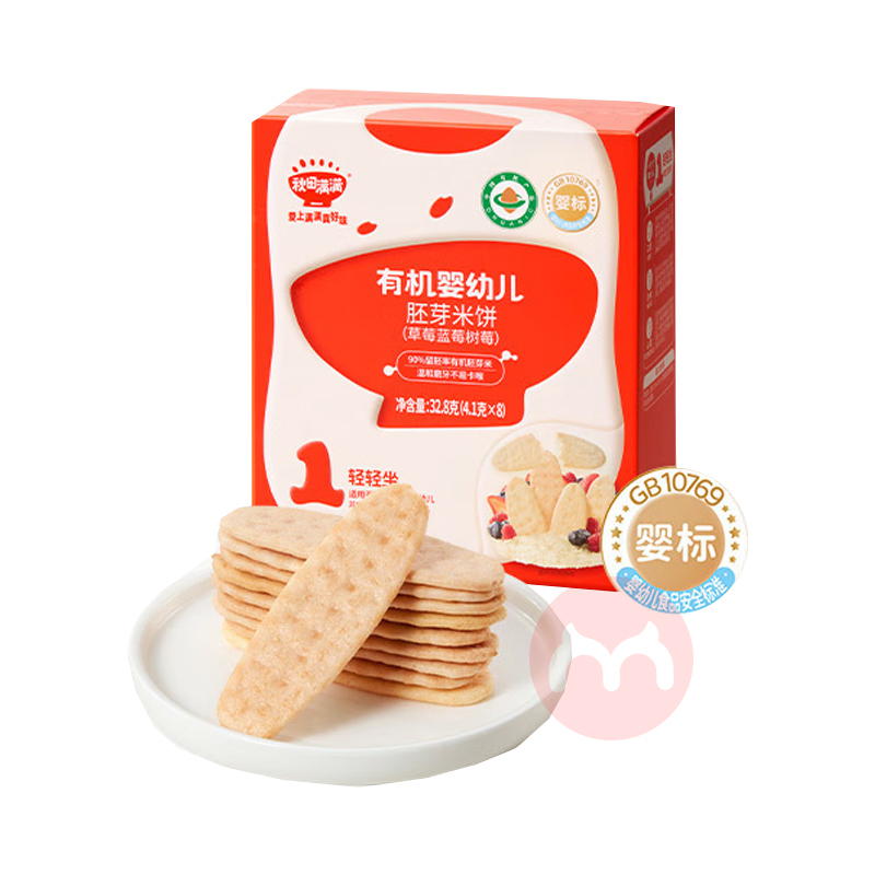 秋田满满有机婴幼儿胚芽米饼 草莓蓝莓树莓味 32.8g