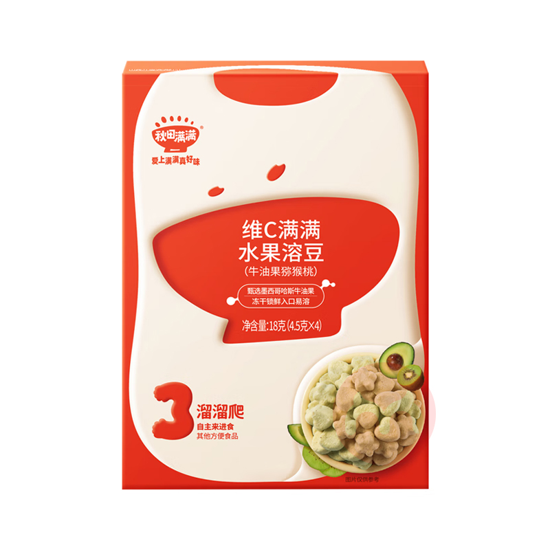 【95任选6件】秋田满满婴幼儿维C满满水果溶豆 牛油果猕猴桃味 18g