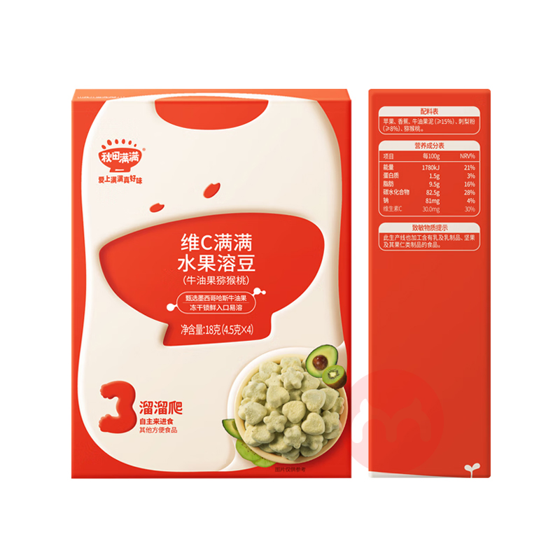 秋田满满婴幼儿维C满满水果溶豆 牛油果猕猴桃味 18g