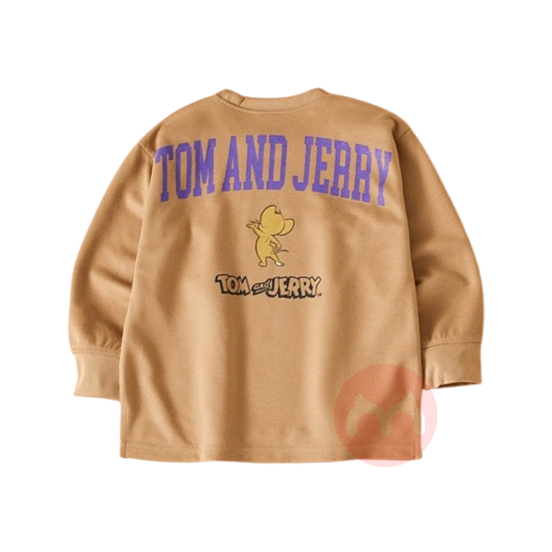 TOM&JERRY 美国猫和老鼠儿童挥手Jerry背面印花圆领卫衣 浅褐色 海外本土原版