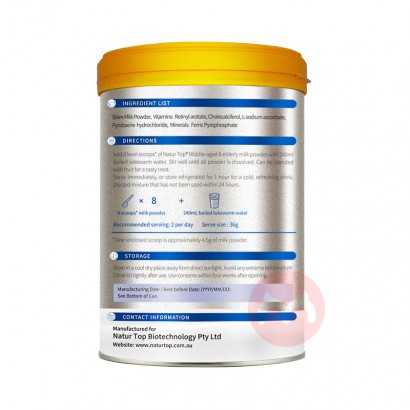 Natur Top澳洲诺崔特中老年脱脂全营养配方乳粉 900g