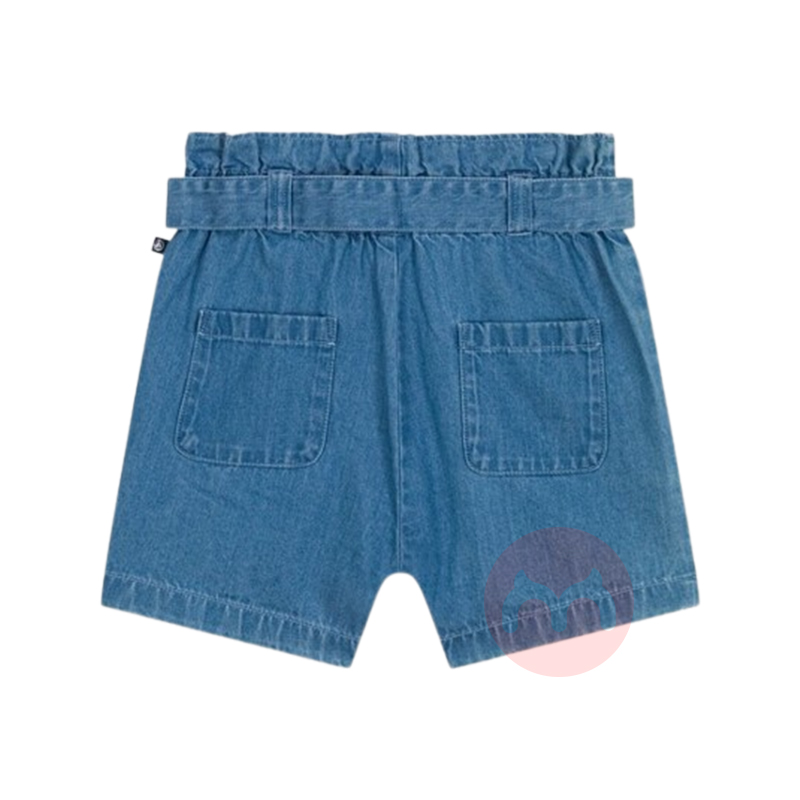 PETIT BATEAU 法国小帆船儿童中款有机棉腰部褶边牛仔短裤 海外本土原版