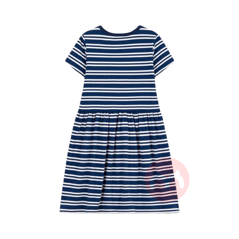 PETIT BATEAU 法国小帆船儿童中款棉质双线条纹短袖连衣裙 海外本土原版