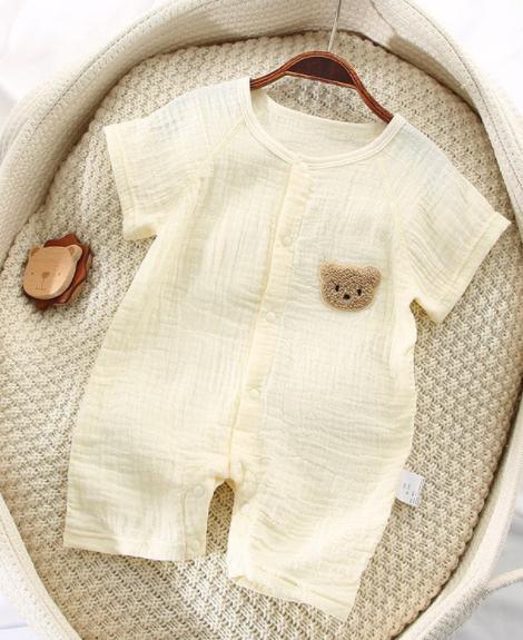 Verantwortung 明德任责宝宝纯棉纱布单排扣无骨短袖夏季哈衣爬服 米色小熊 80码