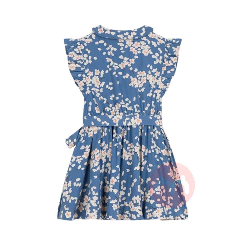 PETIT BATEAU 法国小帆船儿童中款荷叶袖樱花印花连衣裙 海外本土原版