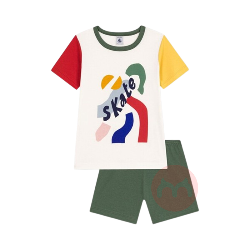 PETIT BATEAU 法国小帆船儿童大版彩色插肩袖印花短袖睡衣套装 海外本土原版