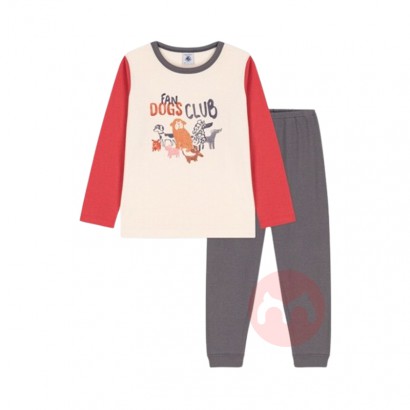 PETIT BATEAU 法国小帆船儿童中款插肩袖小狗印花长袖睡衣套装 粉色 海外本土原版