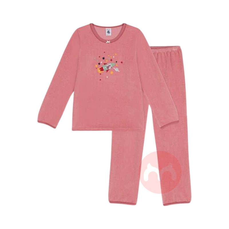 PETIT BATEAU 法国小帆船儿童大版太空旅行火箭印花丝绒长袖睡衣套装 海外本土原版