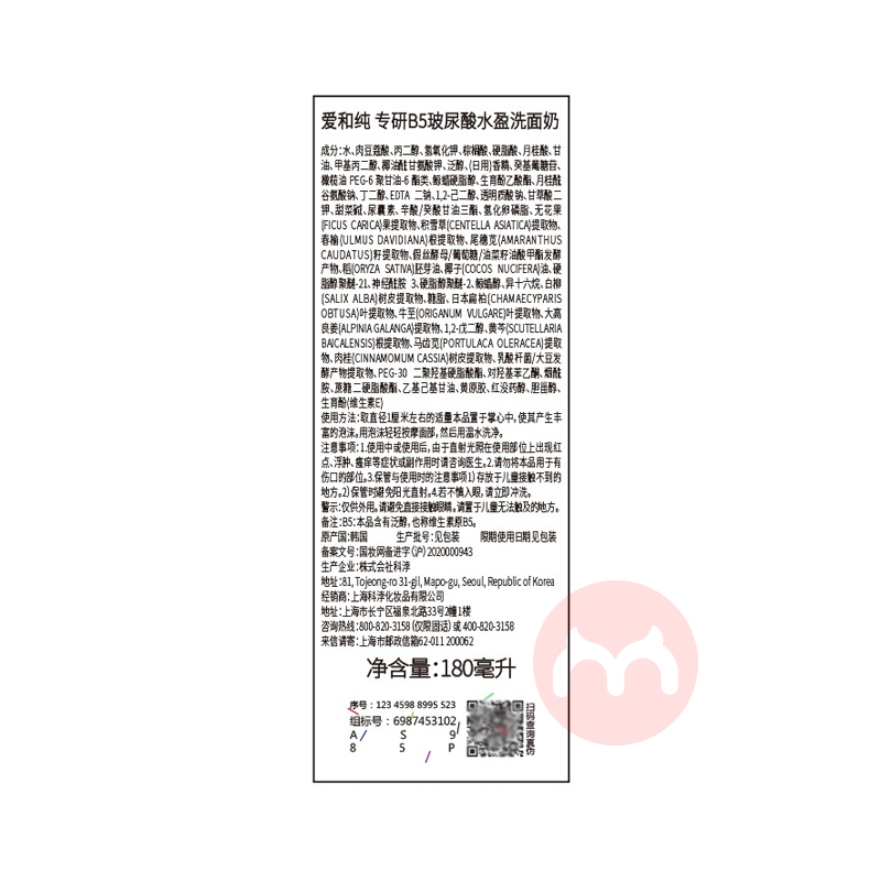 AHC 韩国AHC专研B5玻尿酸水盈洗面奶 180ml 海外本土原版