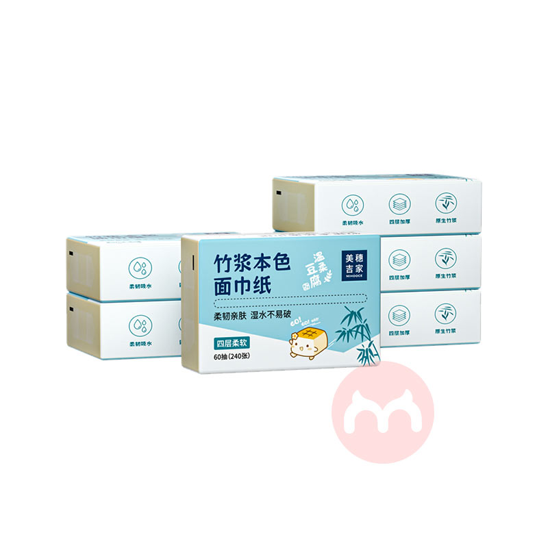 MIHOOCE 美穗吉家竹浆本色抽纸 60抽*6包