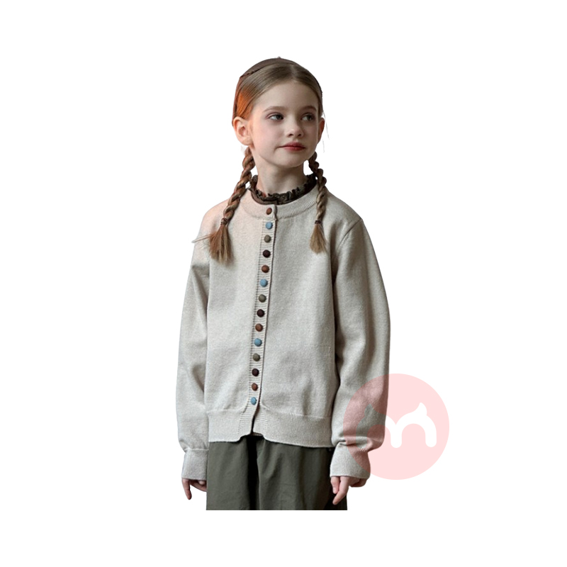 SHINING ELEPHANT 绚象儿童米色木耳领针织衫
