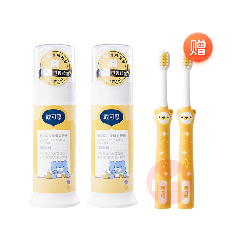 戴可思儿童奥拉氟健齿牙膏 70g*2支 赠牙刷2支