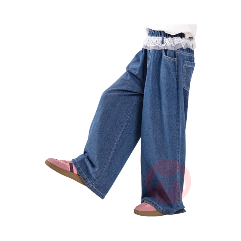 SHINING ELEPHANT 绚象儿童蓝色蕾丝花边牛仔裤