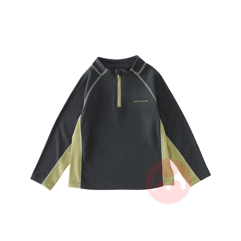 SHINING ELEPHANT 绚象儿童立领拼接撞色上衣 深灰