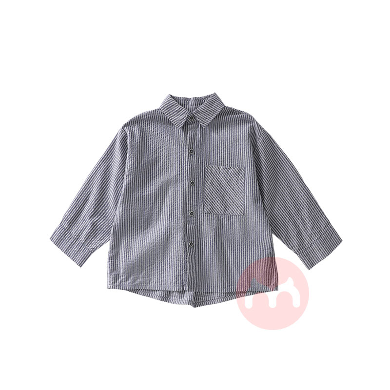 SHINING ELEPHANT 绚象儿童经典条纹百搭衬衫 蓝色