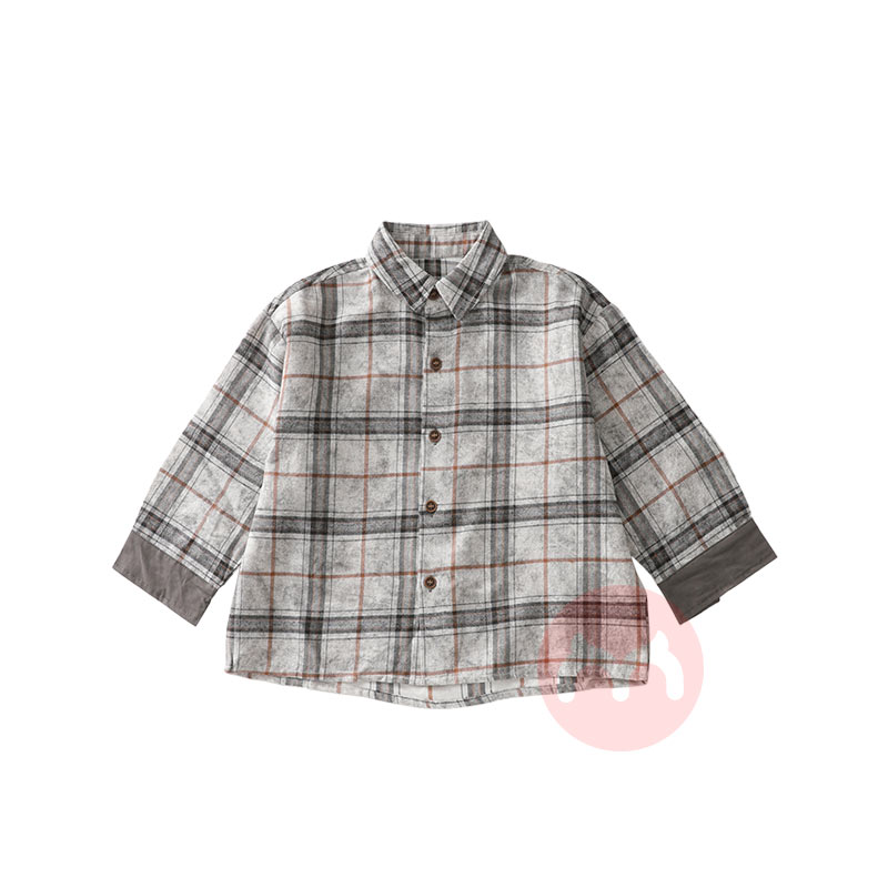 SHINING ELEPHANT 绚象儿童经典格子衬衫 米灰色