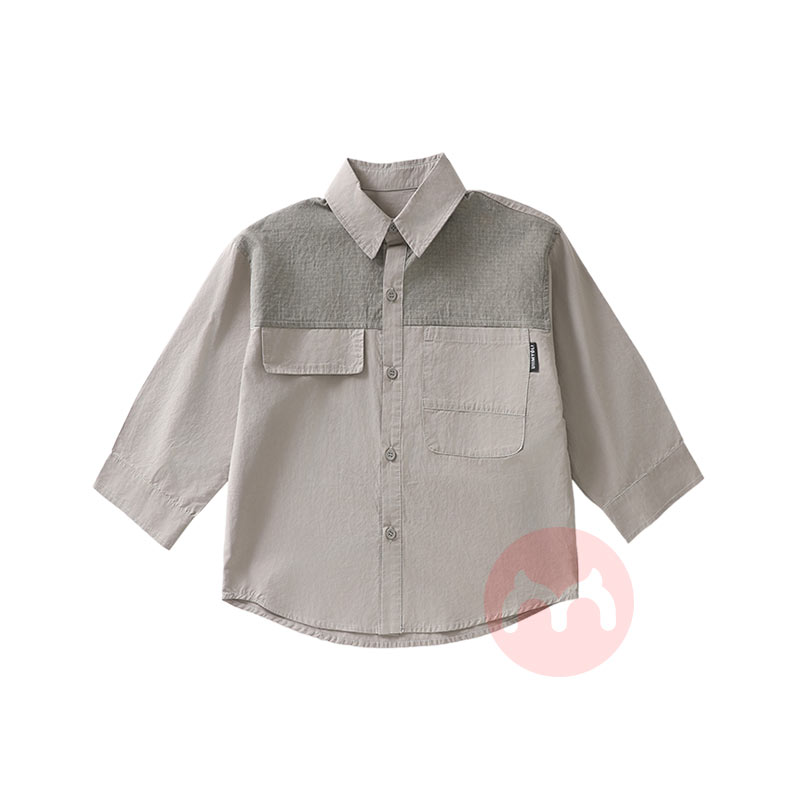 SHINING ELEPHANT 绚象儿童个性拼接潮酷衬衫 灰色