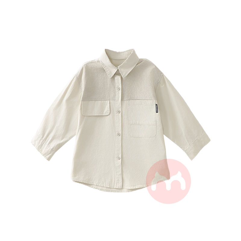 SHINING ELEPHANT 绚象儿童个性拼接潮酷衬衫 米色