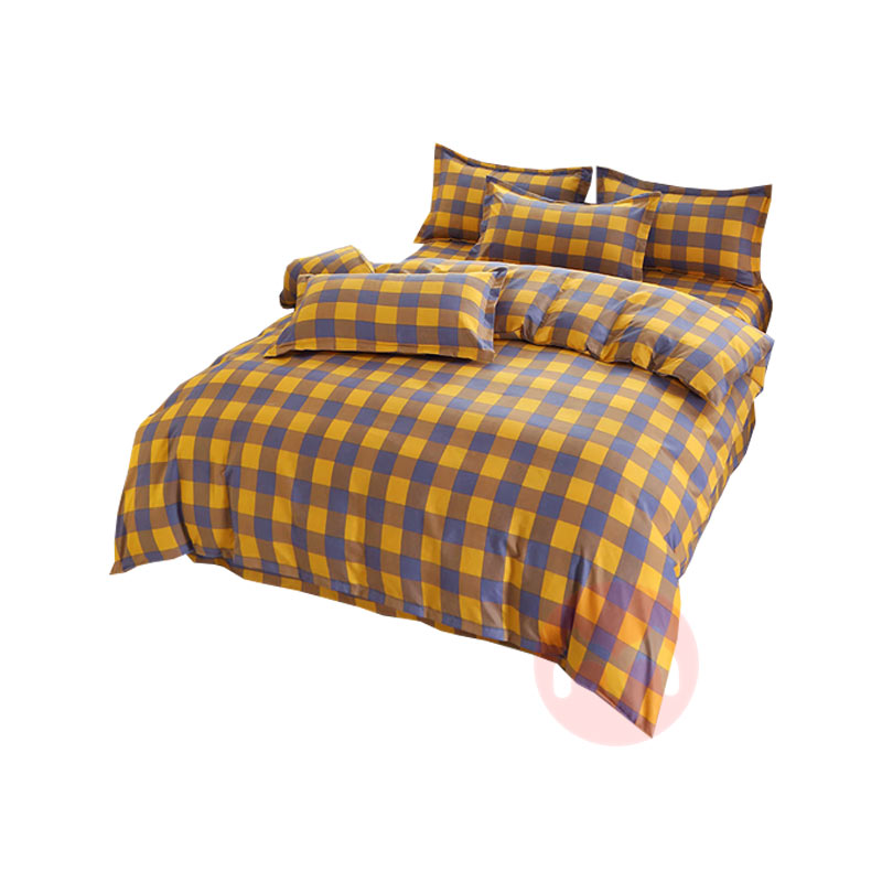 舒正 磨毛印花生态棉四件套 黄小格