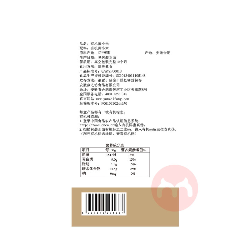 燕之坊有机小米 470g