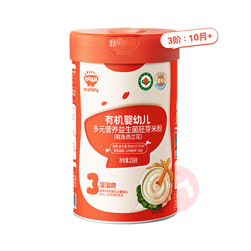 秋田满满有机婴幼儿多元营养益生菌胚芽米粉 258g 鳕鱼西兰花
