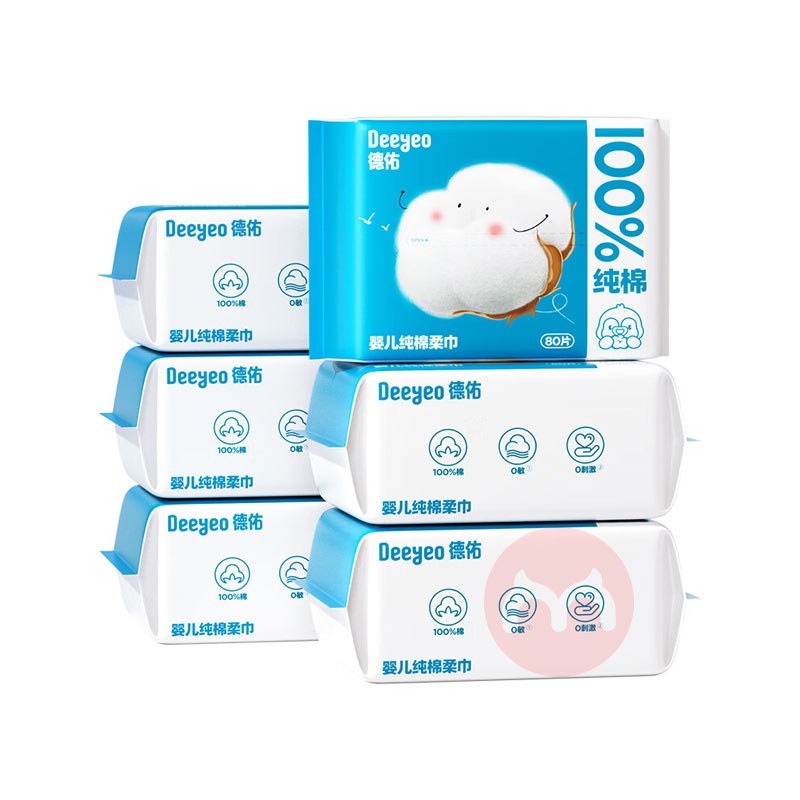 Deeyeo 德佑婴儿纯棉抽取式棉柔巾 80片*6包