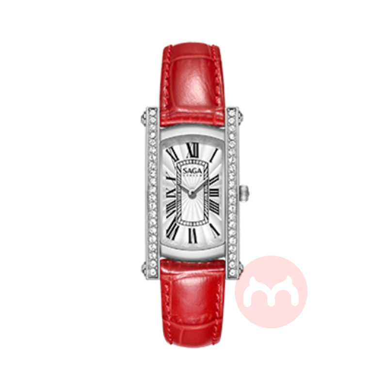 SAGA 世家复古经典小方表 铂金红色皮带