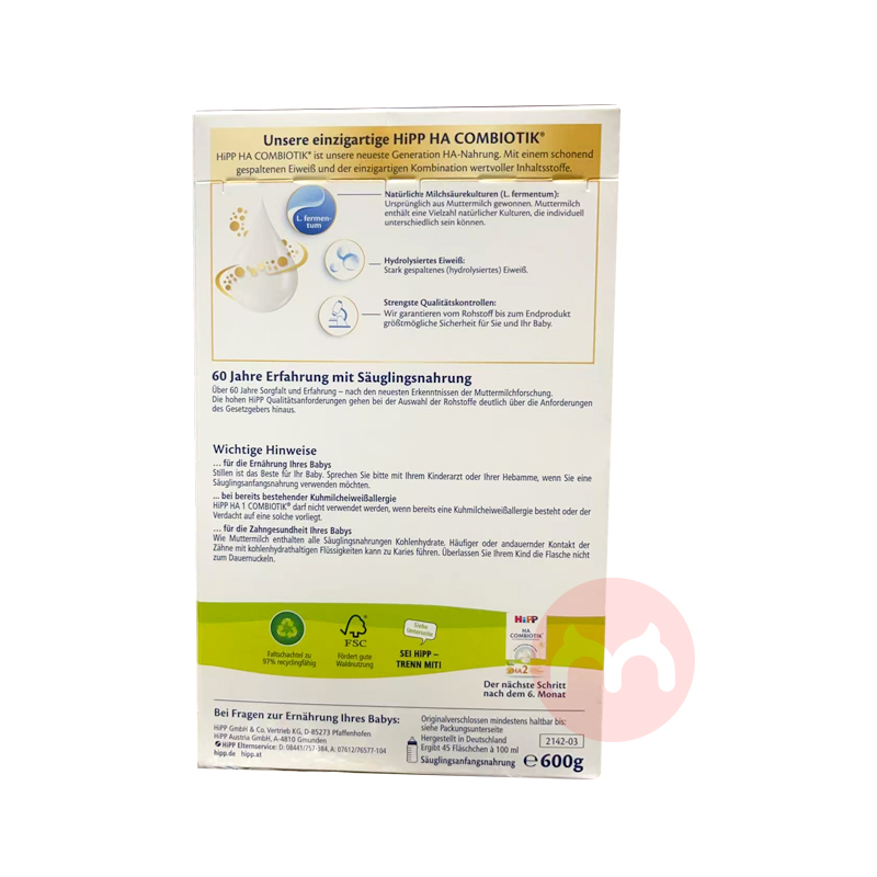 HiPP 德国喜宝HA适度半水解婴幼儿奶粉2段 6个月以上 600g 德国本土原版