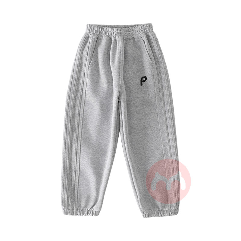 SHINING ELEPHANT 绚象儿童春款字母P休闲裤 浅白灰