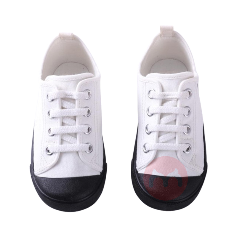 ASAHI 日本朝日儿童系带款白色帆布鞋