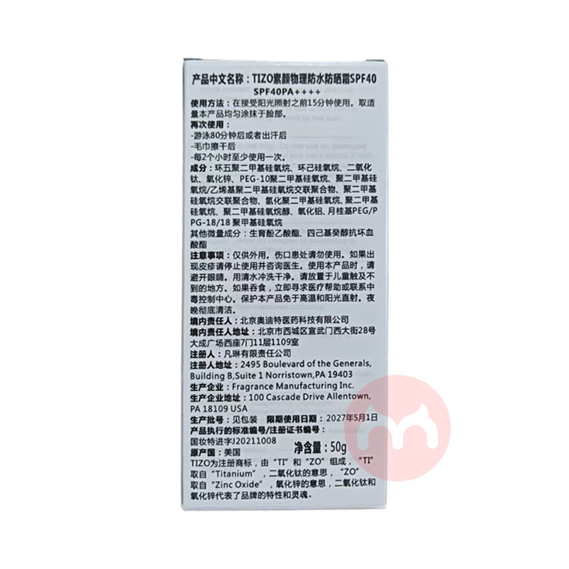 TIZO 美国TIZO素颜物理防水防晒霜 50g