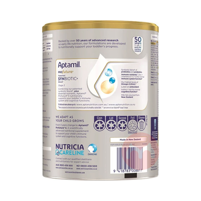 Aptamil 澳洲爱他美白金版婴幼儿配方奶粉3段 1-3岁 900g 海外本土原版