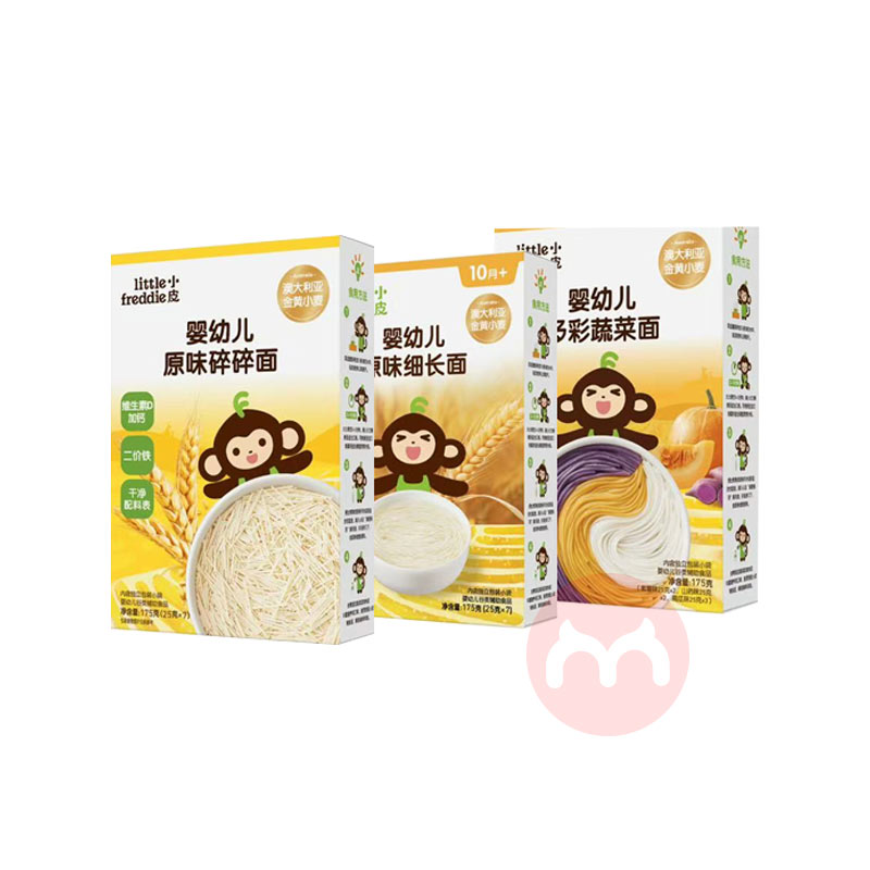 【3盒装】Little Freddie 小皮婴幼儿面条 原味碎面175g+细长面175g+多彩面175g