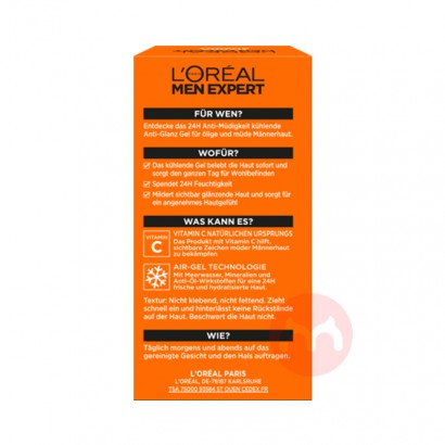L`OREAL Paris 法国巴黎欧莱雅男士劲能冰酷控油保湿润肤霜 海外本土原版