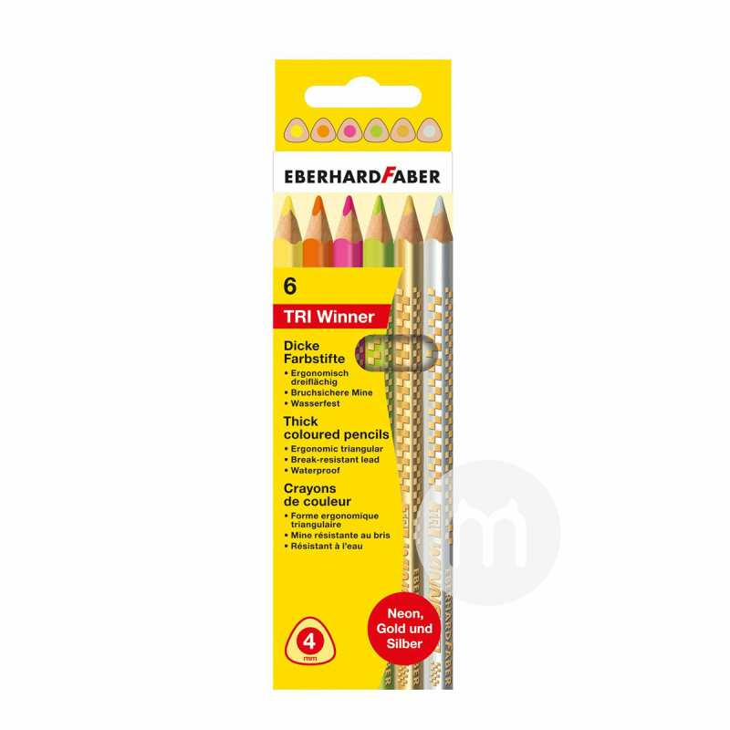 EBERHARD FABER 德国EBERHARD FABER儿童三角彩色铅笔6只装 海外本土原版