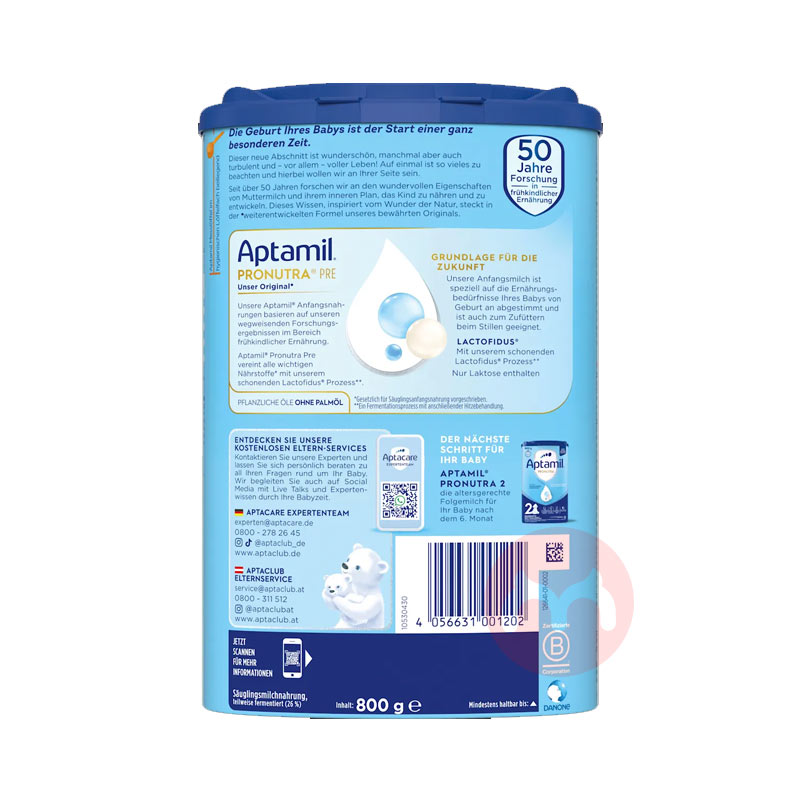 Aptamil 德国爱他美婴幼儿奶粉pre段 0-6个月 800g 德国本土原版