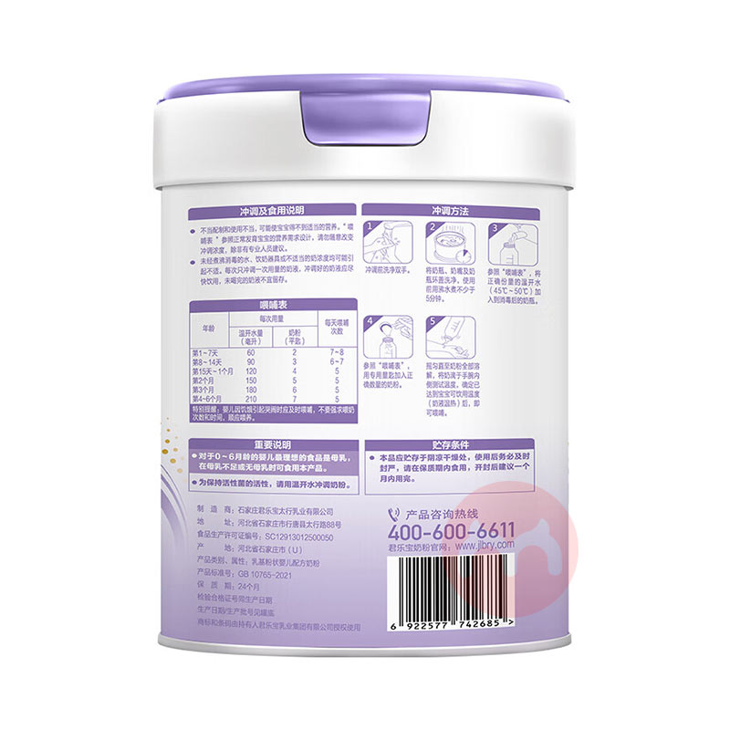 君乐宝淳护益生菌婴幼儿奶粉1段 800g 0-6个月