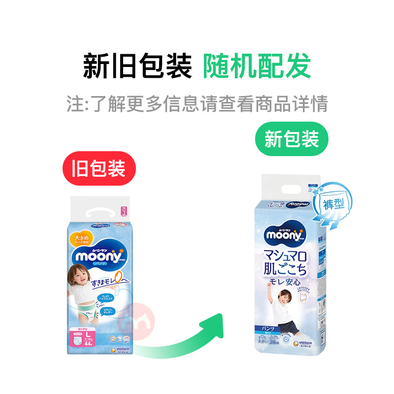 Moony 日本尤妮佳畅透系列裤型婴儿拉拉裤L码 44片 女宝宝 日本本土原版