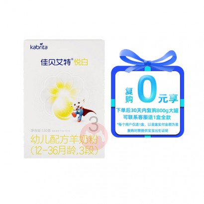 【复购0元享】Kabrita 佳贝艾特悦白婴幼儿羊奶粉3段 150g 12-36个月