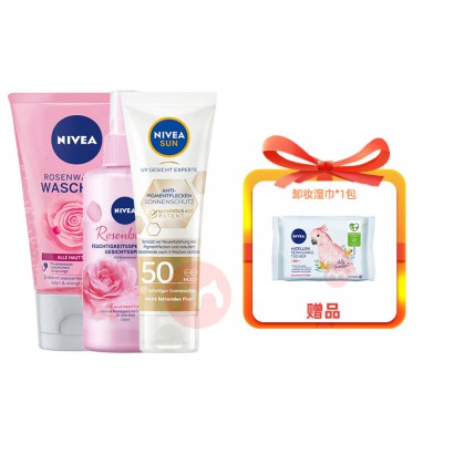 【限时送礼】NIVEA 德国妮维雅玫瑰护肤套装(防晒霜+玫瑰洁面+保湿喷雾) 海外本土原版