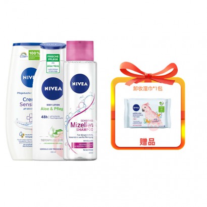 【限时送礼】NIVEA 德国妮维雅洗护套装(洗发露+沐浴露+芦荟身体乳) 海外本土原版