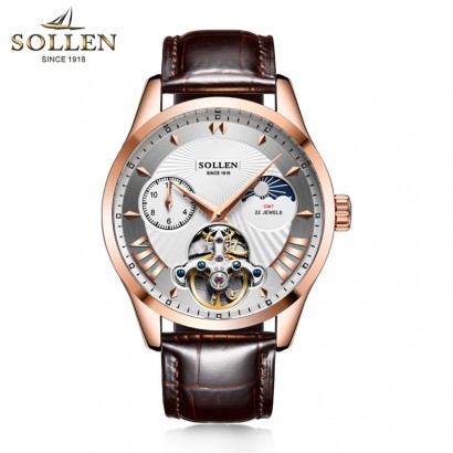 SOLLEN 梭伦男士全自动镂空皮带机械手表 商务款