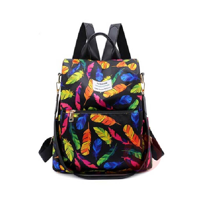 HYX 恒源祥时尚印花三色羽毛防盗双肩包