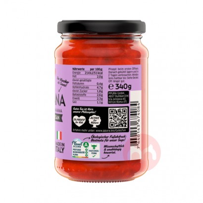 【126任选3件】PPURA 德国PPURA有机茄子帕尔马干酪番茄酱 340g 海外本土原版